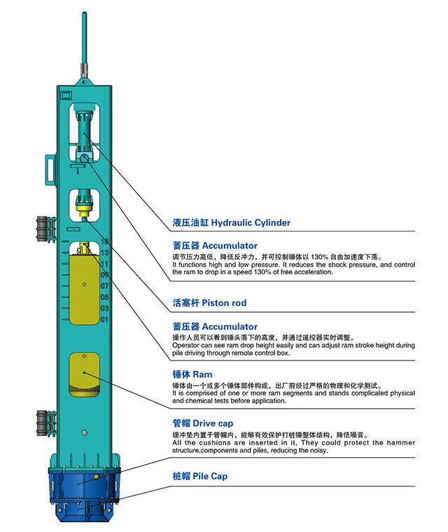 2. Strong penetrating power, more penetrating power to sand and cobblestone layer than traditional diesel hammer,